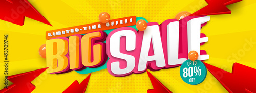 Sale banner template design with geometric background , Big sale special offer up to 80% off. Super Sale, end of season special offer banner. vector illustration.