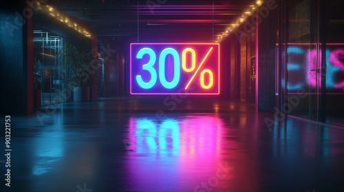 Sale, discount, 30 percent off, 30% neon sign on dark background