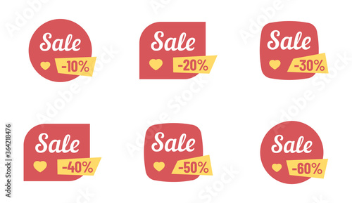 sale discounts from 10 to 60 percents on modern vector red shapes vector illustrations. promo advertising discounts on red and yellow shapes for web, ui, mobile app design, business promo advertising