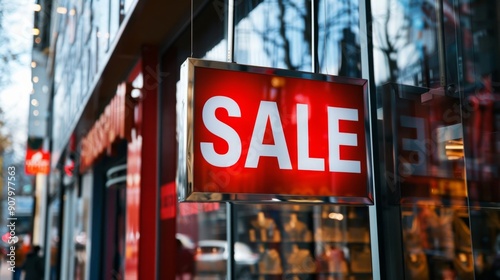 Sale Sign Hanging in a Shop Window.