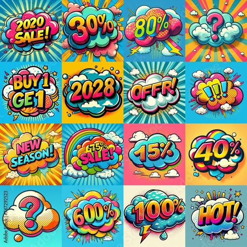 Sale stickers pop art style. AI generated illustration