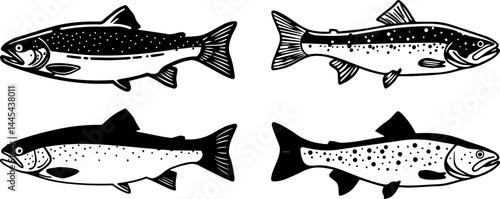 Salmon and Trout Vector Set – Black and White Detailed Fish Illustrations Collection