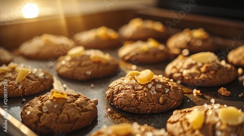 salted, baking, cookie, oven, golden hour, sweet, dessert, spice, homemade, tray, delicious, cosy, warm, comfort, rustic, festive, snack, aromatic, golden light, kitchen