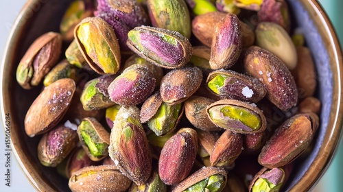 pistachio, nut, bowl, closeup, food photography, health food, snack, delicious, tasty, green, red, brown, texture, food, closeup, hi-res, detail, photo, image, salty, organic, natural, healthy snack, culinary, gastronomy, still life, topview, salt, crispy, high-quality