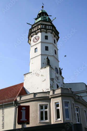 Salzwedel, Germany - April 20, 2018:: View of the tower of the Black Eagle (Schwarzer Adler) in the Hanseatic city Salzwedel, Germany.
