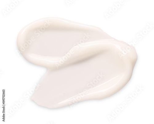 Sample of face care cream isolated on white, top view