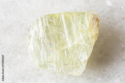 sample of rough hiddenite mineral on white marble