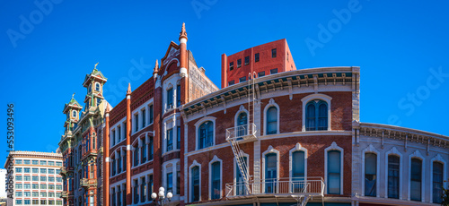 brick, architecture, retro, old, copy space, nobody, san diego, downtown, city, skyline, building, street, blue, sky, background, southern, california, us, low angle, point of view, house, building, town, facades, historic, travel, urban, window, house, exterior, tour tourism, roof, landmark, red, view, tower, history, historical, city landscape, famous, attraction, holiday maker