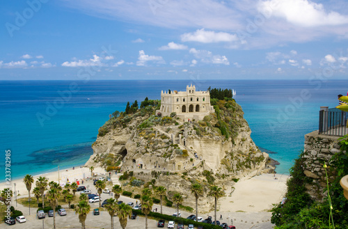 Sanctuary church Santa Maria dell Isola on top rock, Tropea, Italy