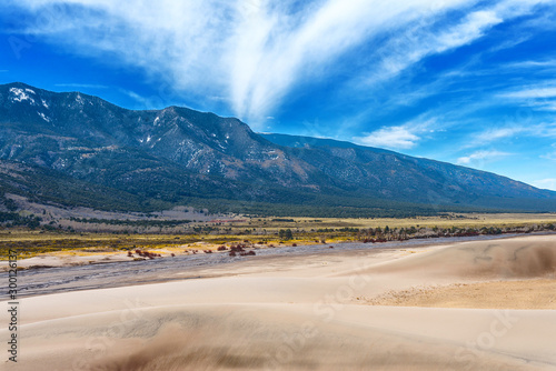 us, colorado, dune, sand, landscape, sky, cloud, cloudy, line, horizon, distance, expanse, bright, national park, preserve, parkland, nature reserve, reserve, nature, way, walk, small, adventure, travel, hiking, journey, trip, river, bank, stream, brook, grass, forest, mountain, mountainous, hill, range, peak, mountain, slope, people, couple, river bank