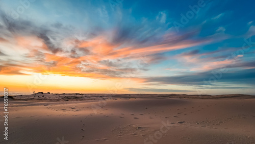 Sand dunes at Birubi Beach at sunset