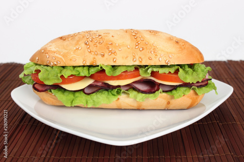food, ham, cheese, fast food, lettuce, tomatoes, pan, eat, healthy, light, kitchen, fresh, breakfast, lunch, dinner, white, dish, tablecloth, provocative