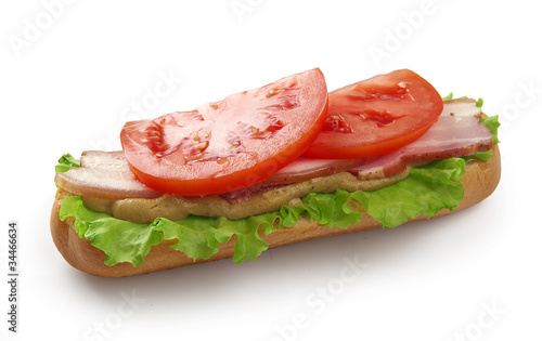 sandwich, bread, bacon, mustard, lettuce, tomatoes, food, eat, edible, isolate, isolated