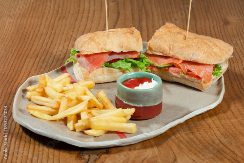 Sandwich and fries on plate