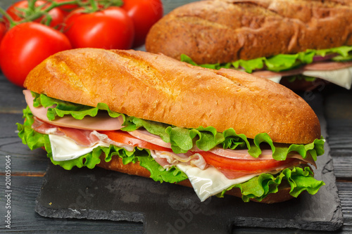 food, meal, bread, lunch, sandwich, fresh, snack, cheese, ham, wooden, lettuce, meat, delicious, tomatoes, vegetable, dinner, green, salad, healthy, sliced, cookery, epicure, baguette, background, tasty, closeup, slice, fast, bun, table, grilled, rustic, brown, breakfast, bacon, toast, toasted, paper, italian, big, french, sub, board, freshness, club, pork meat, macro, wood
