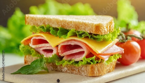 Sandwich Tasty sandwich with ham or bacon cheese tomatoes lettuce and grain bread delicious club sandwich or school lunch breakfast or snack