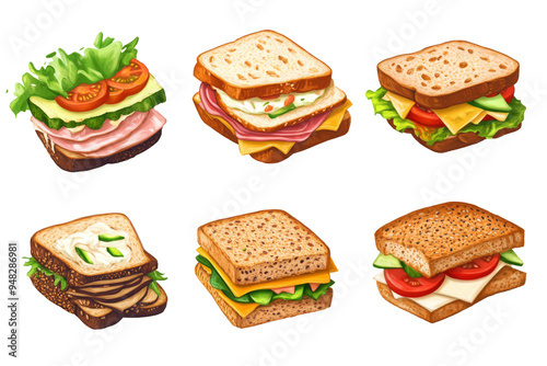sandwich, food, lunch, bread, ham, cheese, lettuce, tomatoes, cucumber, grilled, vegetable, meat, variety, deli, snack, stack, fresh, slice, toasted, healthy, ingredient, whole grain, white, wheat, bun, baguette, club, filling, classic, tasty, delicious, assortment, nourishment, epicure, fast, meal, layered, diet, selection, culinary, breakfast, sliced, cut, appetising, mixed