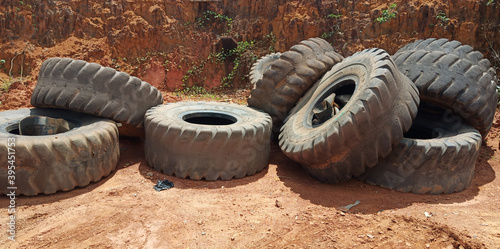 Sanggau District West Kalimantan - november 20, 2020 Used tires in my workshop are suitable for shoe or sandal companies, for making rubber chairs, etc.