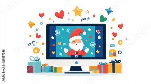 santa, christmas, computer, celebrate, screen, holiday, gift, snow, decoration, festive, platform, interface, colourful, video, message, culture, present, commerce, seasonal, icon, countdown, graphic, puckered, light, event, display, image, winter, virtual, design