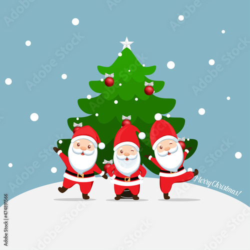 Santa Claus and Decorated Christmas tree. Merry Christmas and Happy New Year background. Vector illustration.