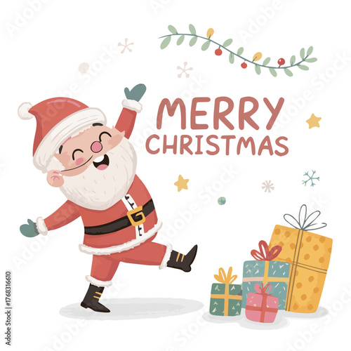 christmas, santa, claus, santa, snow, gift, winter, holiday, christmas, vector, card, cartoon, hat, celebration, tree, illustration, snowman, happy, box, present, merry, new year, decoration, snowflake, gift