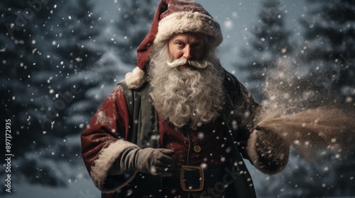 santa, holding, colourful, christmas gift, festive, holiday, winter, celebration, joyful, cheerful, traditional, red, white, beard, hat, jolly, gift, december, seasonal, merry, happy, present, festivity, decoration, toy, sleigh, reindeer, happiness, magic, children, excitement, wonder, surprise