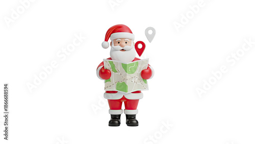 santa, map, christmas, holiday, navigation, planning, route, delivery, winter, journey, travel, gift, celebration, character, icon, symbol, guide, destination
