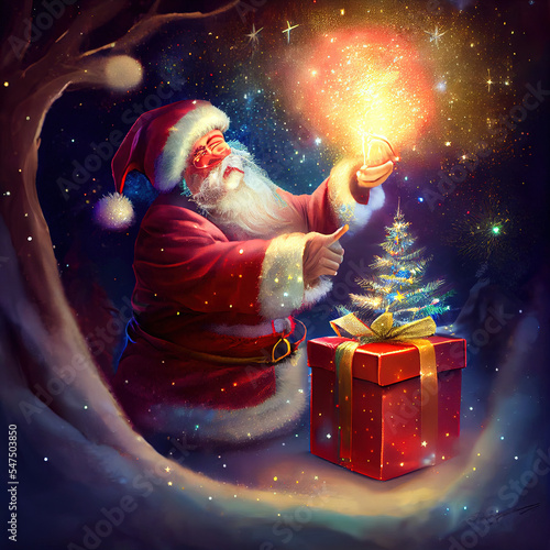 santa, christmas, holliday, red, sparkly, light, christmas tree, magic, candle, ornament, green, star