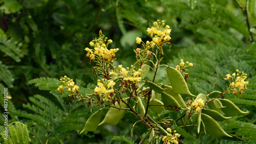 Sappan tree are flowers blooming and have many pod for seed reproduction.
