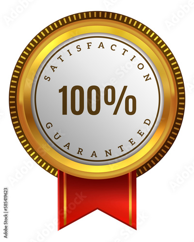 Satisfaction guarantee badge with red ribbon. High quality label
