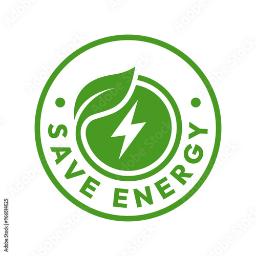 Save energy symbol. Energy icon with green leaf. Eco friendly, environmentally. Eco icon. Vector illustration.