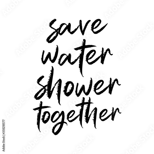 Save water shower together. Beautiful environmental quote. Modern calligraphy and hand lettering.