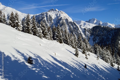 snow, winter, mountain, landscape, mountain, sky, alps, ski, nature, cold, peak, blue, white, alpine, travel, ice, tree, snowy, europa, forest, high, hill, view, panorama, rock, savoie, alpes