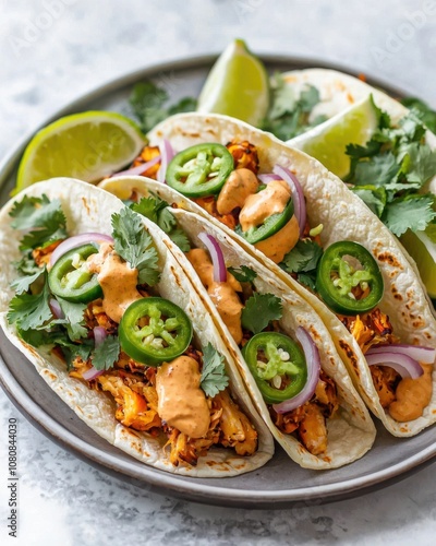 Savor delicious chicken tacos with fresh cilantro lime and spicy sauce for an unforgettable meal