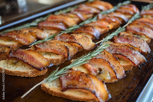 Savory bacon-wrapped bread slices with fresh rosemary