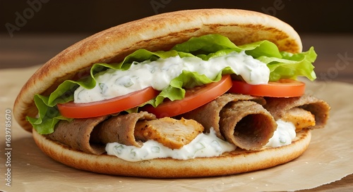 Savory Classic Chicken Gyro Wrapped In Soft Pita Bread, Filled With Juicy Seasoned Chicken, Crisp Lettuce, Ripe Tomatoes, And Cool, Creamy Tzatziki Sauce For A Mediterranean Delight