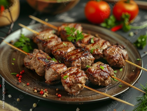 Savory Meat Kebab on a Plate for Kitchen Decor Promotion Generative AI
