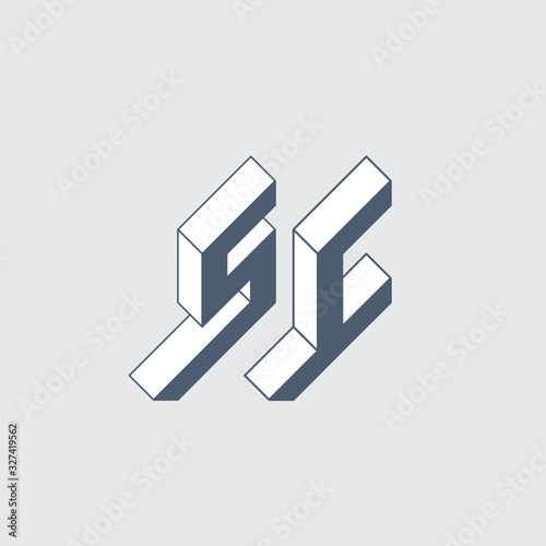 SC - international 2-letter code of Seychelles. S and C - Monogram or logotype. Isometric 3d font for design. Volume alphabet. Outline fonts. Three-dimension letters.