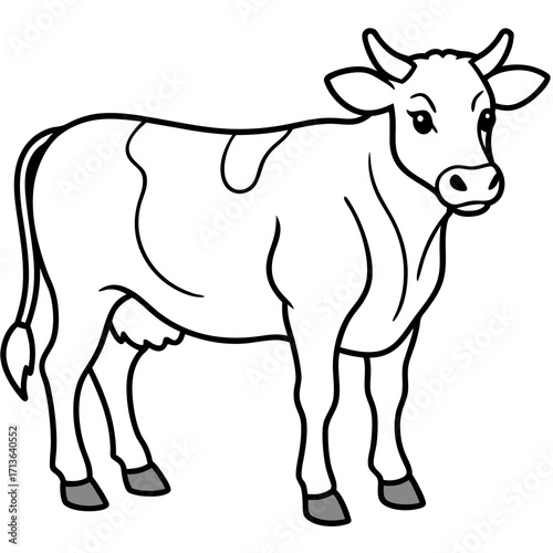vector, illustration, scalable, icon, cow, animal, farm animal, dairy, farm, agriculture, mammal, cattle, nature, wildlife, domestic, herbivore, pasture, grazing, barn, ranch, countryside, rural, pet, art, graphic, design, clip art, drawing, line, outline, black, and, white, monochrome, simple, minimalist, cartoon, cute, friendly, portrait, profile, full, body, isolated, ai