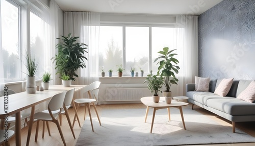 Scandinavian living room interior design zoom background,Doodle Galaxy patterned wallpaper graphics
