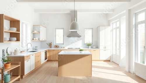 Scandinavian Style - Kitchen Interior Design With Scandinavian Concept - Hotel Kitchen - Apartment Kitchen Interior With Table - Interior Design
