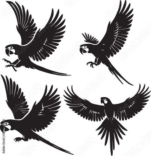 scarlet macaw, flying scarlet macaw, macaw silhouette, scarlet macaw vector, flying bird poses, bird flight illustration,