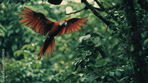 macaw, scarlet, rainforest, jungle, bird, flight, wing, feather, red, green, tropical, nature, wildlife, avian, exotic, beautiful, vibrant, colourful, animal, parrot, tree, leaf, foliage, tree branch, soaring, freedom, wild, adventure, amazon, beak, plumage, fauna, flora, biodiversity, ecosystem, conservation, environment, paradise, wingspan, colours, beauty
