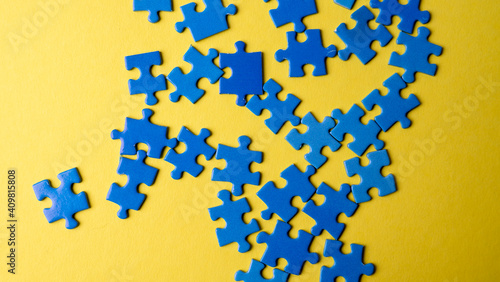 scattered puzzle pieces on colored background