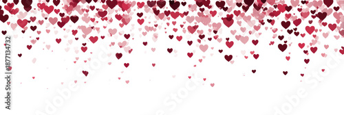 Scattered red 3D hearts flowing from top right to center smooth on transparent background