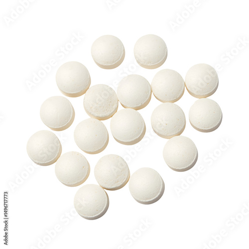 Scattered White Round Tablets, Pills, Medicine, Pharmacy, Healthcare, Dosage, Treatment, Remedy, Cap