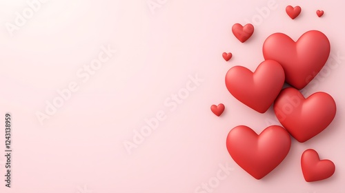 Scattering heart shaped confetti on a soft pink surface creating a beautiful minimalist composition that symbolizes the joy romance and of love This creative image evokes feelings of happiness affect