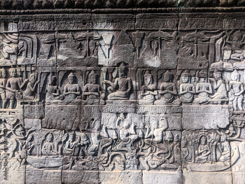 scene carved in cambodian temple