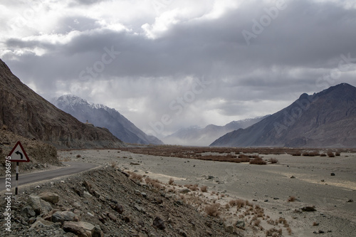 Scene of Hunder Sand Dunes in Nubra Valley in Leh Ladakh, Jammu and Kashmir, India