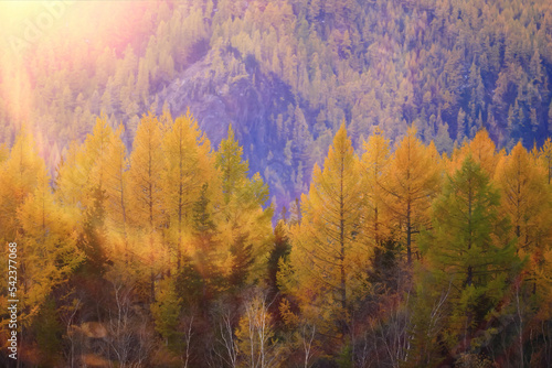scenery yellow larch beautiful autumn forest, ecology climate change